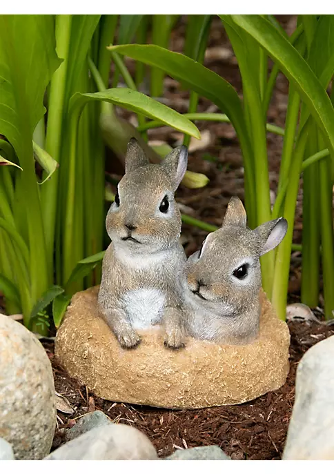 Two curious bunnies look like they are popping right out of their little rabbit hole.