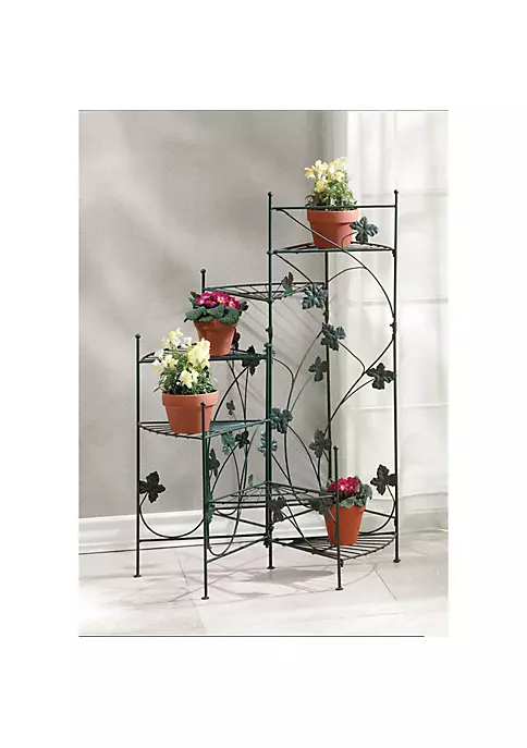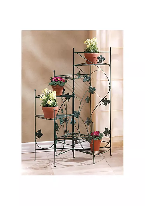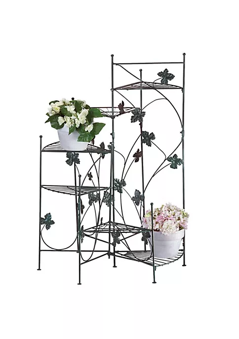 It’s over 3 feet tall and has six wedge-shaped shelves to show off plants and other decorative items. Perfect for both indoors and outdoors, this stand will look good on a porch, in a sunroom, or out in the garden. 10 pounds. 22.25 x 22.5 x 38.5 inches tall. Iron.
