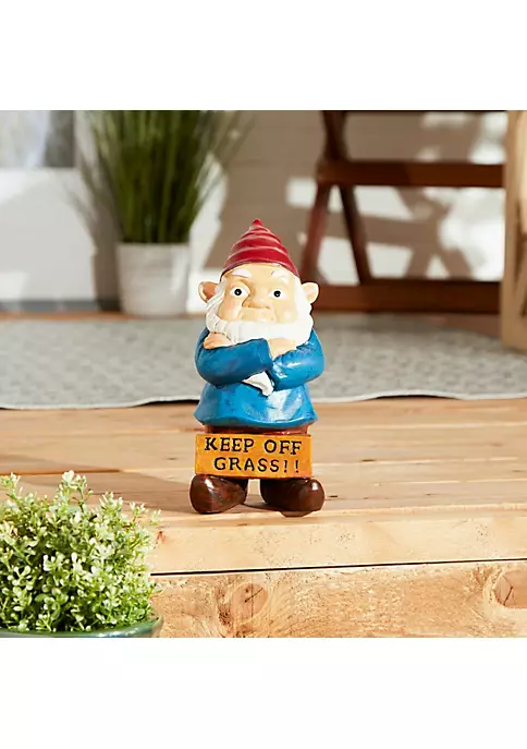 Don’t cross this gnome! He’s got a grumpy look and a sign that reads “Keep Off Grass!!” A funny and charming way to let folks know they need to stay clear of the yard. 1.6 pounds. 4.25 x 4.25 x 10 inches tall. Polyresin.