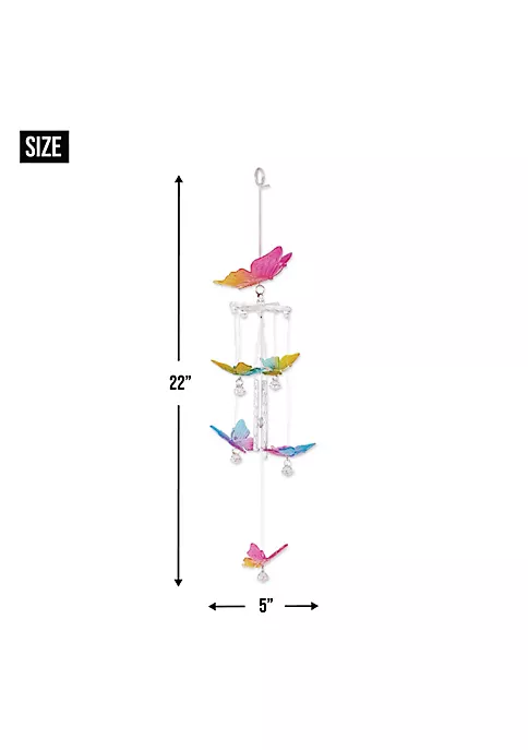 Cheerful acrylic butterflies in rainbow colors will flit around in the wind and make the chimes below sing out a summer tune!