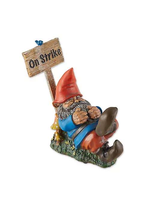 This hardworking gnome is standing up for (or laying down for?) his rights! Cute chubby guy is all tuckered out. This would look adorable in a garden, or even indoors.