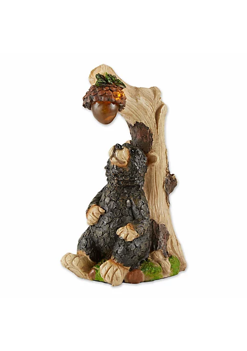 By day, this adorable black bear will charm you as he ponders how to fetch that delicious acorn dangling above him. By night, the acorn will light up thanks to the built-in solar panel. Perfect for yard or garden
