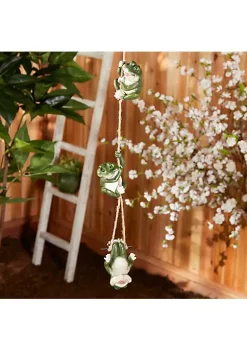 Three-in-one decoration, with a birdbath, planters, and a solar-powered light. Made of plastic that has the look of metal, it is lightweight, yet it’s sturdy and will hold up in all types of weather. Some assembly required. One AA battery included. Plants not included.