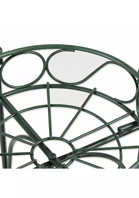 Metal plant stand works indoors or out. Simple design fits any decor. Dark green in color. Two tiers. Weight 5.29 pounds. 9.25 x 28 inches tall. Metal.